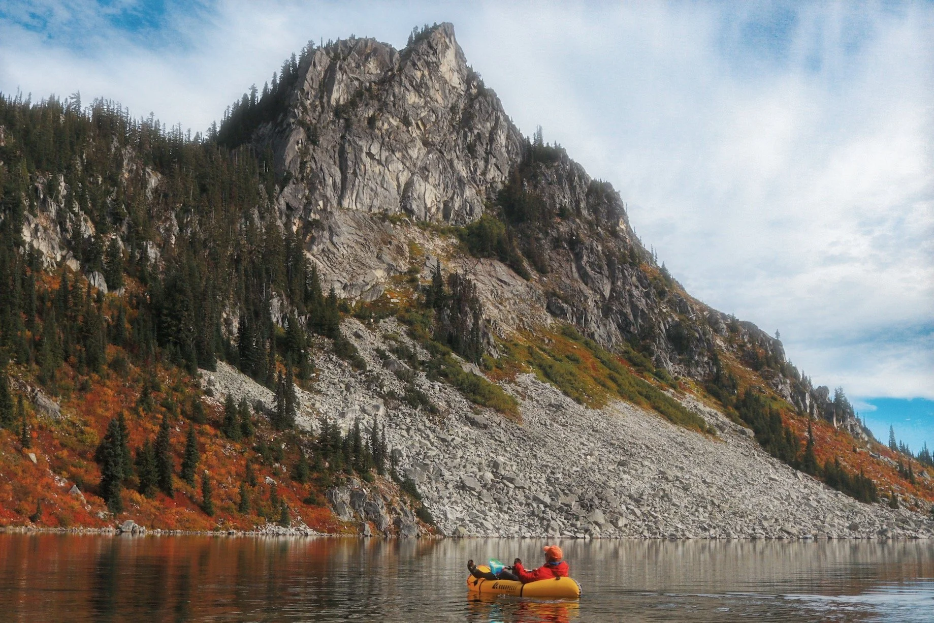 Set against the dramatic backdrop of Liberty Bell and the Early Winters Spires, Blue Lake is one of the most photogenic and accessible alpine lakes in the North Cascades. The trail is relatively short with steady elevation gain, leading you to vibrant blue water nestled in a rocky cirque. It’s a popular day hike, but bringing a packraft lets you float out into the stillness—away from the shoreline crowds—for incredible views and a peaceful break.