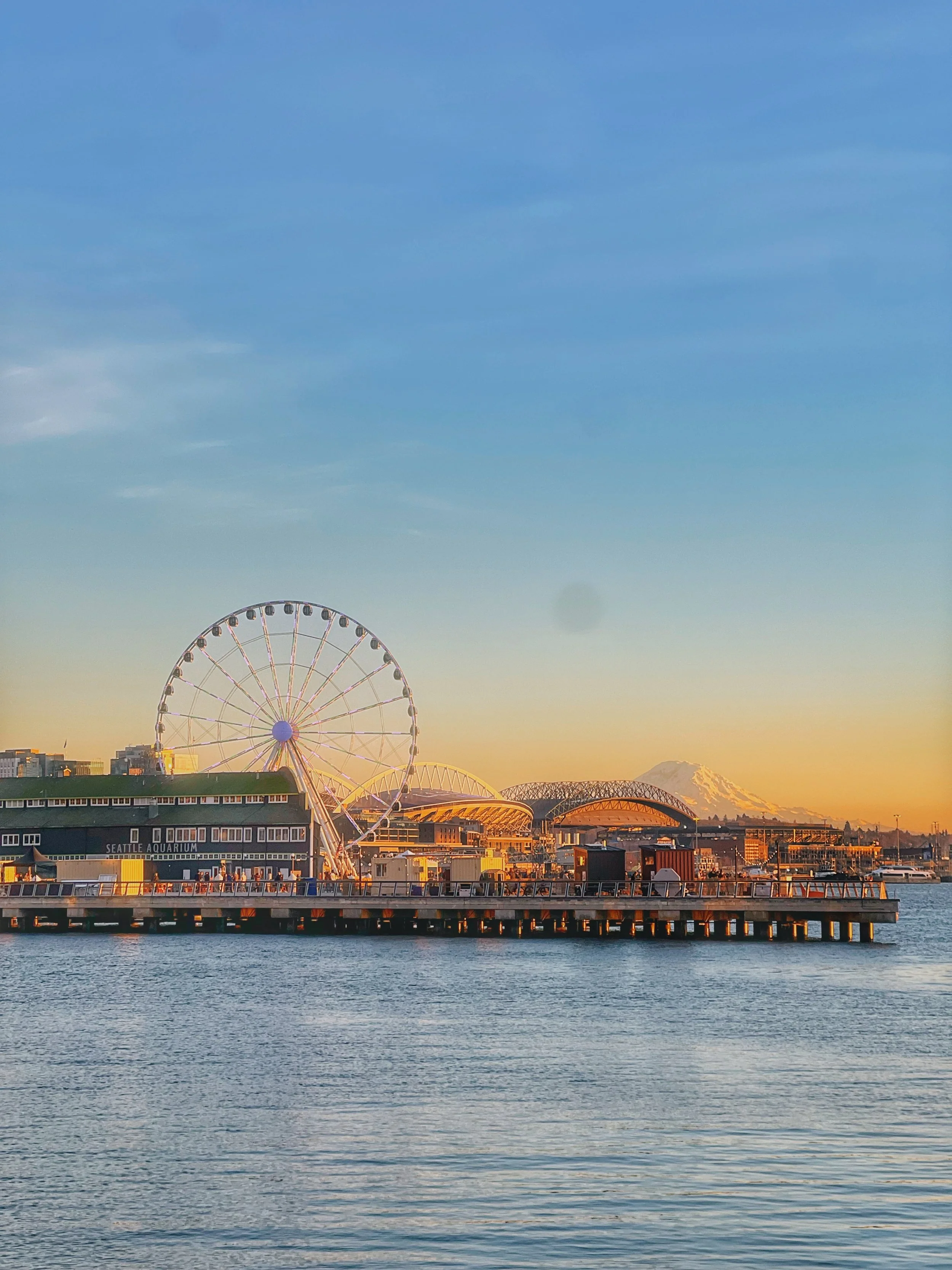 The sunsets are incredible. Watching ferries come and go while you're stopped for ice cream hits different. There are tons of food and drink options, and you're riding right along Elliott Bay with the Olympics and Mount Rainier in the distance. It's touristy, sure, but it's also genuinely beautiful - especially at golden hour.